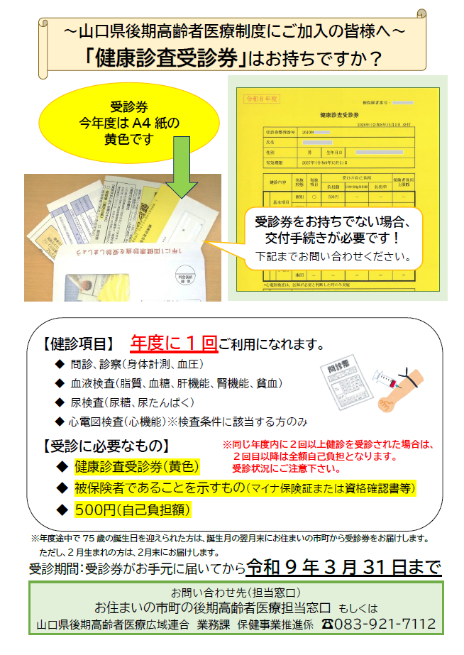 山口県後期高齢者医療広域連合では、後期高齢者医療制度の被保険者を対象に、健康診査を実施しています。生活習慣病を正しく理解し早期に対処するためにご活用ください。