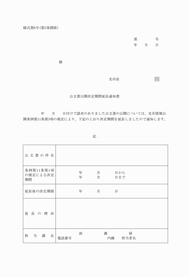 第3条 市長は、公開の請求に係る公文書が存在しないことが明らかになったときは、速やかに請求者に対して、その旨を公文書不存在通知書(様式第2号)により通知するものとする。