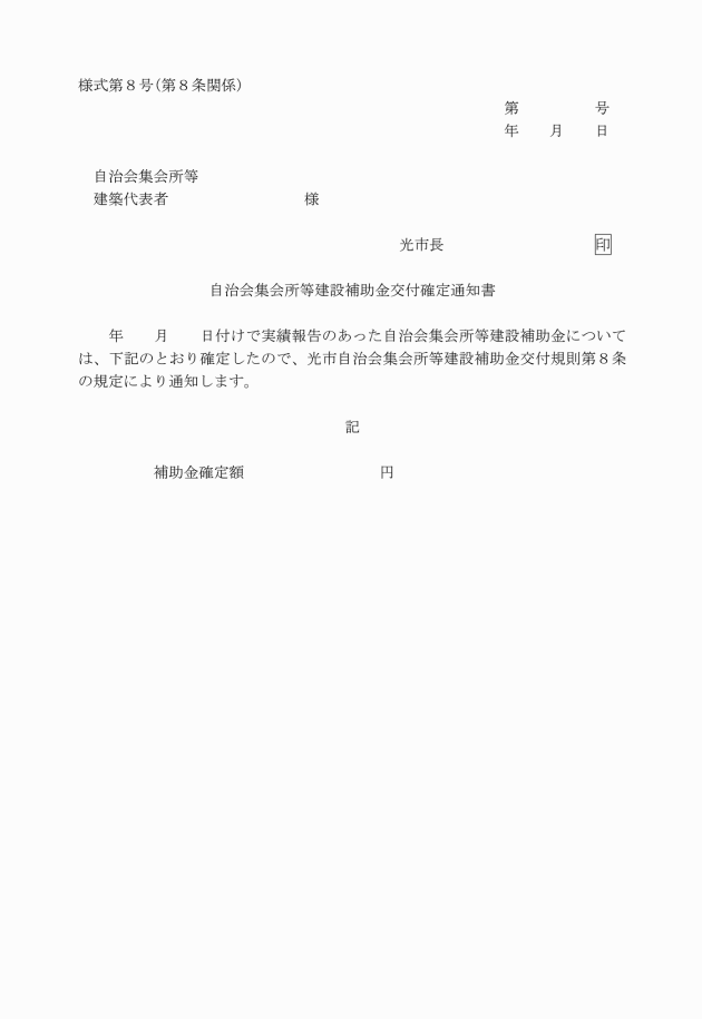 ○光市自治会集会所等建設補助金交付規則
