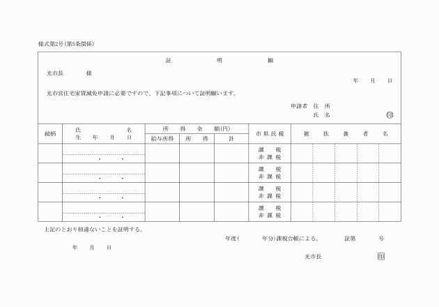 ○光市営住宅家賃減免取扱要綱