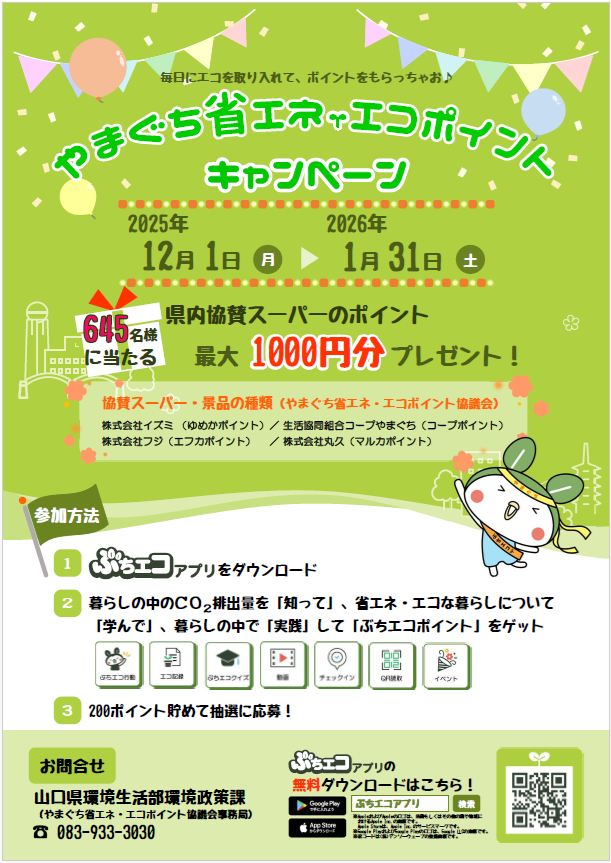 令和7年度「ぶちエコアプリ」を活用したやまぐち省エネ・エコポイントキャンペーンの実施について